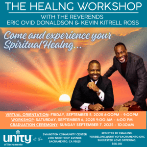 A suggested love offering of $50 per participant helps support this powerful event. But don’t let that stop you. We believe this experience should be available to everyone, so we are seeking event sponsors, and we are accepting scholarship offers to ensure everyone who wants to be healed can experience this transformative weekend. Don’t miss this opportunity to heal, grow, and celebrate your spiritual journey. The Healing Workshop Weekend is where transformation begins. Reserve your spot and sign up on the registration sheet on the back table following Sunday service or email your contact information to youbelong@unityofsacramento.org.