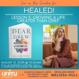 Unity of  Sacramento welcomes Melissa Hull,  author of the amazing new book Dear Drew, for a special lesson and interview session with Rev. Kev.  Following the service, Melissa will provide a “Greater than Grief” workshop for our community and guest.